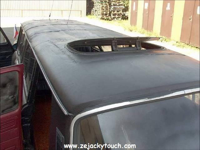 Outre le travaille d’orfèvre au niveau des soudures, il faudra remarquer le détail qui tue tout ( nanan pas la télé N/B ), la touche d’un grand chef d’œuvre, ce qui donne un air ma foi très respectable à cette Skoda, c’est la « feinte » de mini-bar accroché par des tendeurs… Énorme !!!